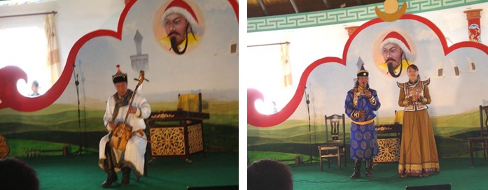 中午我們進(jìn)入了旅游區(qū)蒙古包樣式的餐廳用餐,享受蒙古歌舞。用餐完畢后我們繼續(xù)我們愉快的旅程前往成吉思汗陵。