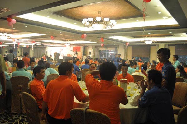 我司每年都會(huì)組織全體員工舉行這一活動(dòng),而今年恰逢公司新標(biāo)志的發(fā)布,更是加入許多精彩節(jié)目!不僅有傳統(tǒng)的晚宴、博餅,更是邀請(qǐng)專業(yè)的演出公司表演精彩的節(jié)目,還有員工自行組織的拉歌活動(dòng)。節(jié)目進(jìn)行當(dāng)中,另有抽獎(jiǎng)環(huán)節(jié)!總之,就是要讓員工在節(jié)日里紅上加紅,喜上加喜!